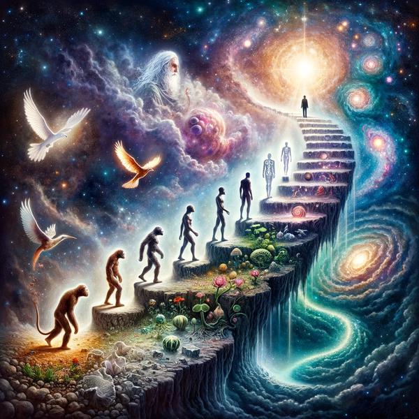 This mystical vision suggests that our personal evolution mirrors both the biological and spiritual journey of all life, making introspection an excavation not only into our ancient, collective past but also into our future.