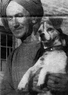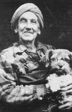Sunyata with the cosmic dog, Sri Cho Chu Wuji, who had been brought from Tibet in a sack along with a tiger cub.