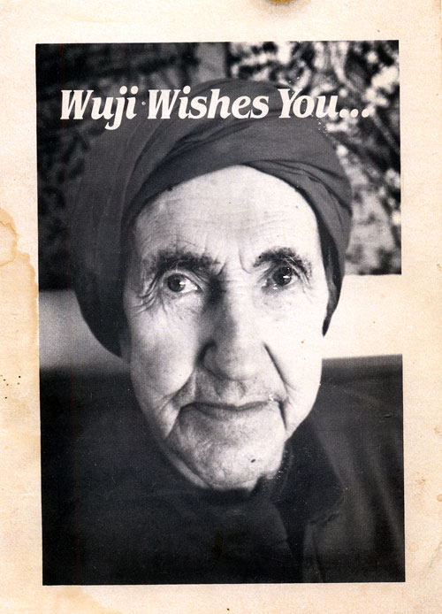So ends the incarnation of our beloved Sunyata. In the writings that follow, if read intuitively, a glimpse and perhaps more will be offered of the exstraordinary being who innerstood in joyous ease and affectionate detachment the mystic wholeness of life, "Trinity beyond being" , "the translucent darkness" . All Wu! to his name.