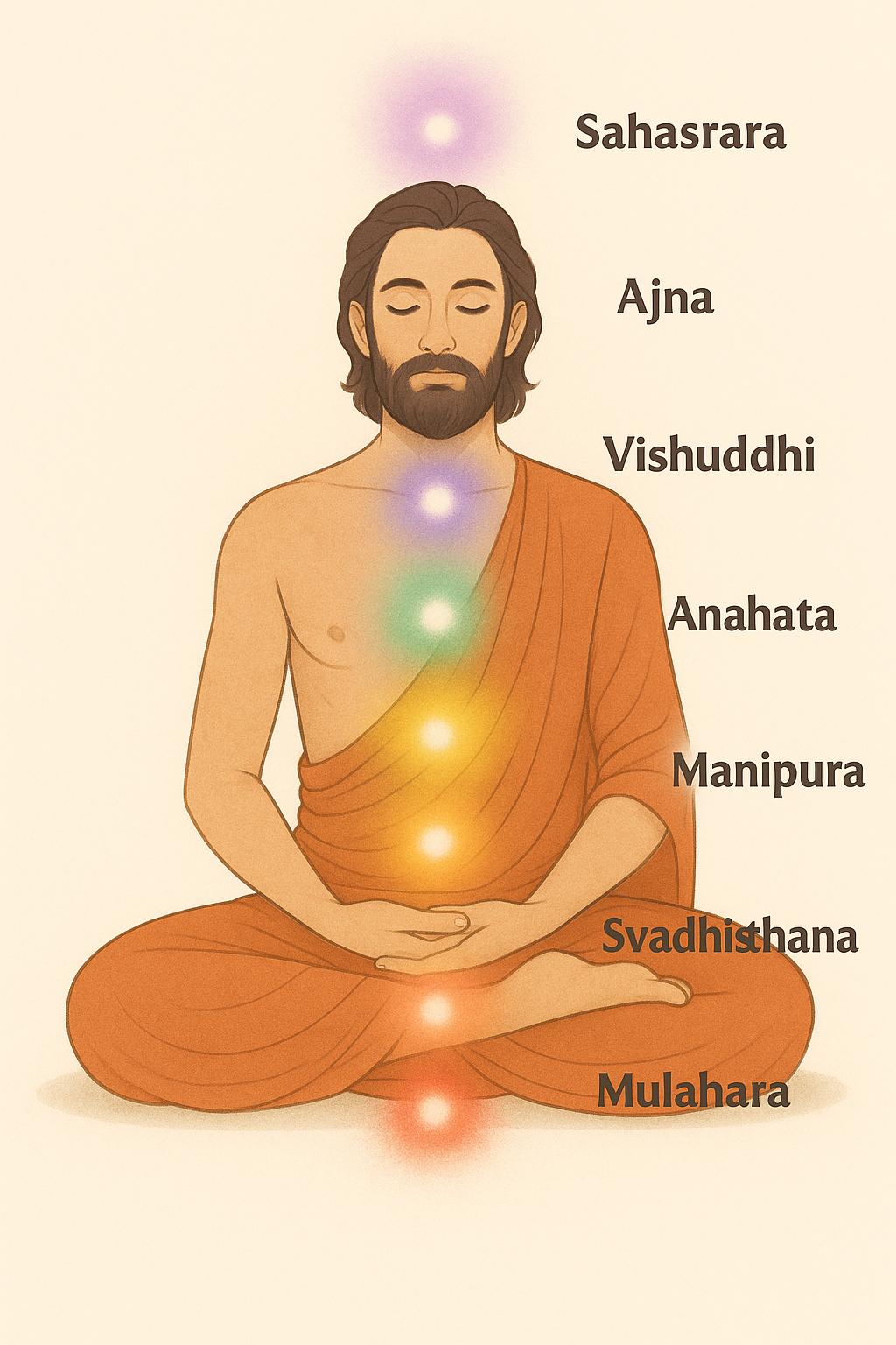 Focused intently on nurturing this body-transcending super-consciousness, Indian philosophical and yogic traditions held that this non-dual, hyper-conscious state would find its fullest expression in the * crown chakra, Sahasrara*, the thousand petalled lotus. According to the famous Indian Saint, Ramakrishna, the lowest chakra it could interact with was the heart chakra, Anahata, in a form resembling universal love. When Ramakrishna in old age got cancer, advisors knowledgeable in the scriptures, urged him to allow his divine concentration descend to his body in order to heal it, Ramakrishna replied: